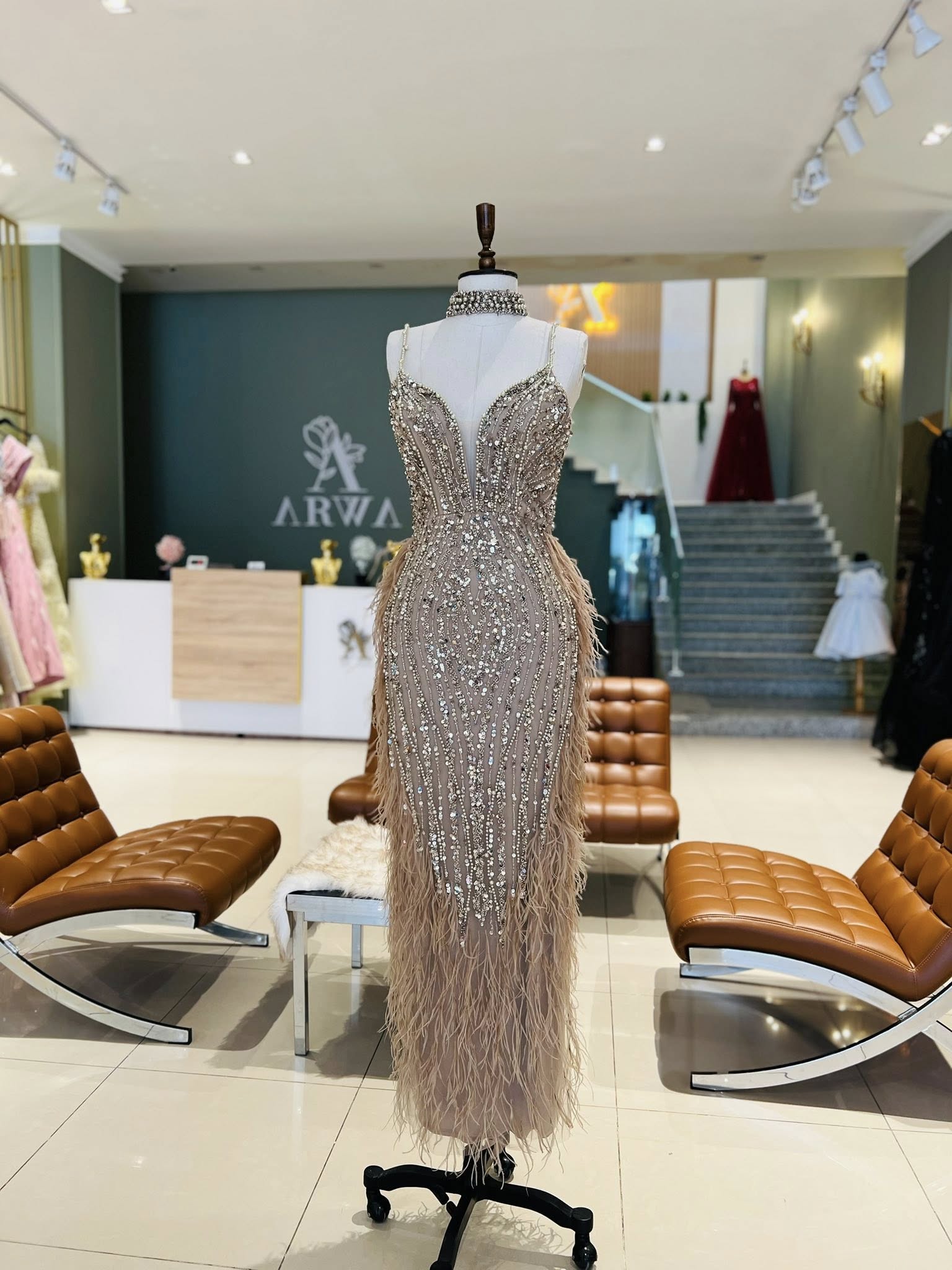 أبهري الجميع بفستان سيليست إيتويليه ، فستان راقي آسر من مجموعة أروى لدى باي ميمي. مزين بخرز كريستالي لامع وشراشيب ريشية ناعمة، يبرز جمال قوامك ببريق النجوم في كل انحناءة.