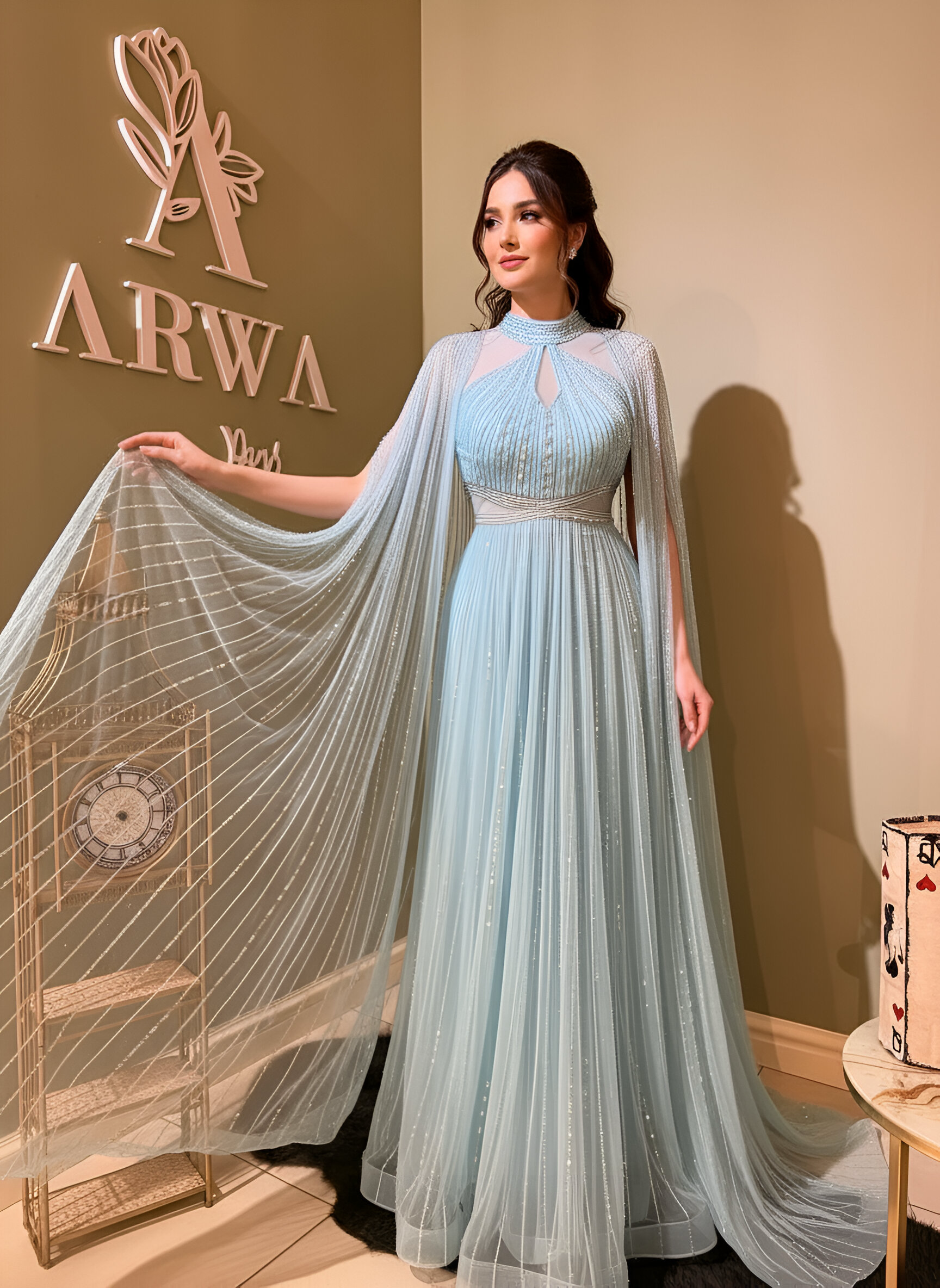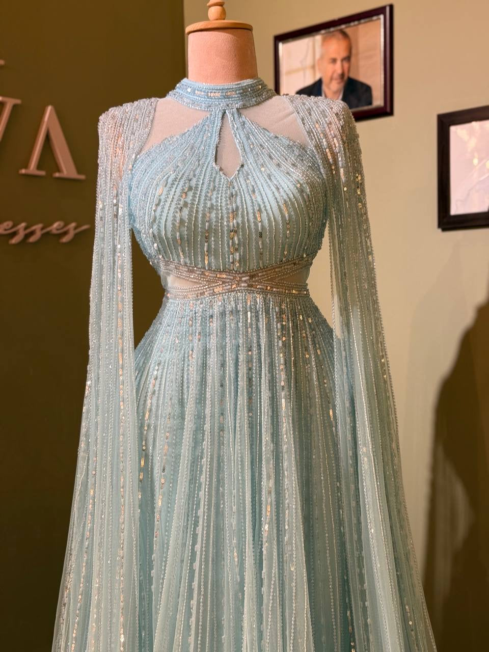 تلتقي الأناقة بالجاذبية في فستان "سكاي بلوسوم"، تصميمٌ آسرٌ صُمم خصيصاً للمرأة التي تُجسّد الرقيّ والرقيّ. يتميز هذا الفستان الأزرق الفاتح الرقيق بتفاصيل خرزية رقيقة تلتقط الضوء مع كل حركة، مُضفياً عليه بريقاً سماوياً ناعماً.